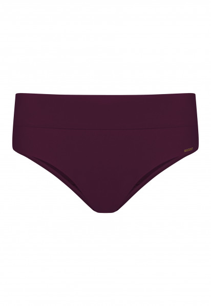 Плавки женские с регулируемой высотой линии талии. Высоту посадки можно регулировать за счет широкого пояса-отворота, поднимая или опуская пояс вниз. Классический вырез по линии бикини. Для большей уверенности все детали продублированы подкладкой.