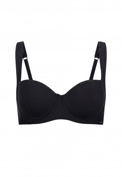 Бюстгальтер с шитой поролоновой чашкой на каркасной поддержке. Чашка с внутренней стороны дублирована хлопком. Расширенные бретели на поролоне и хлопковой подкладке. Мягкий жаккардовый стан на подклад...